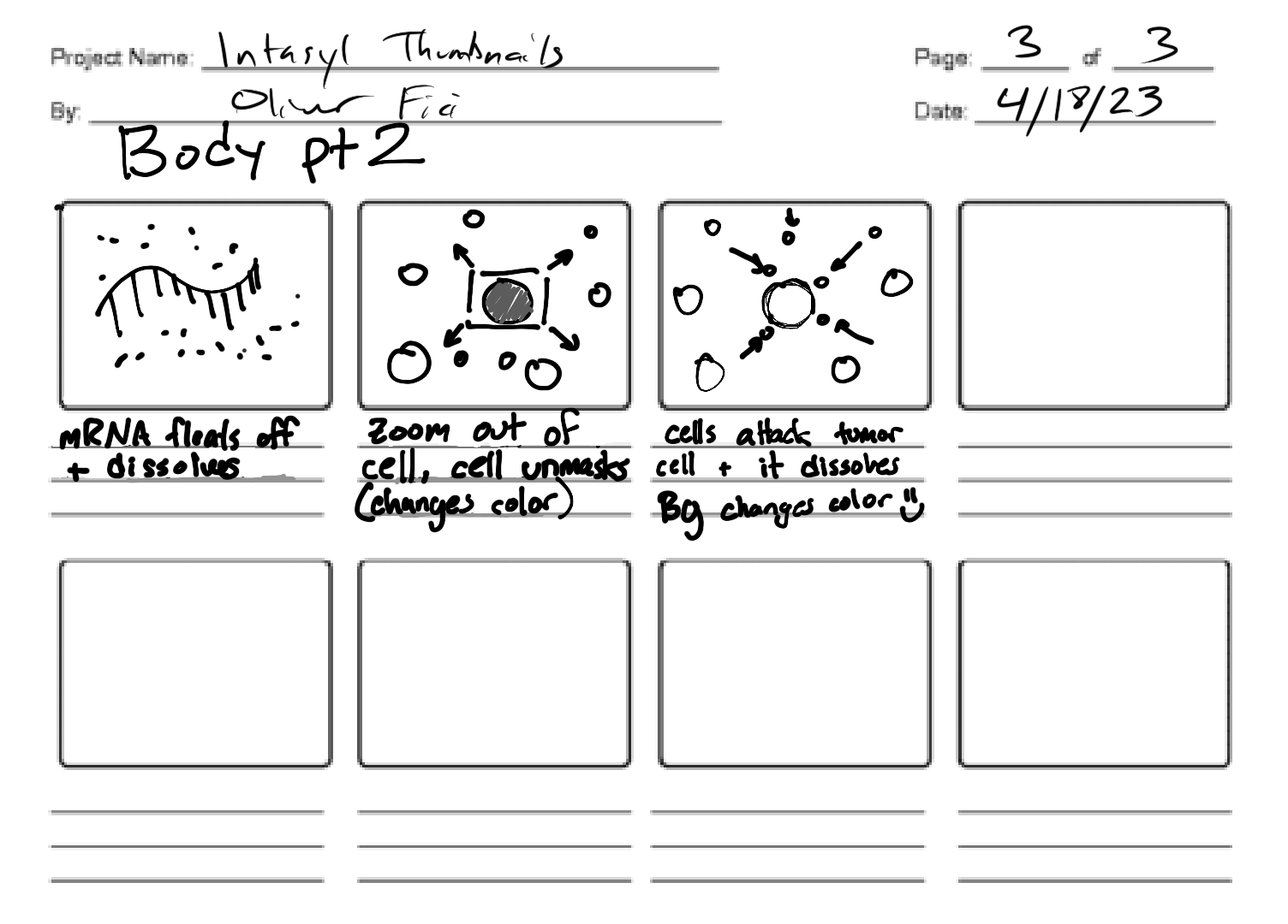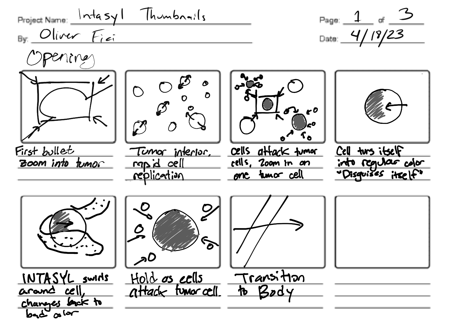 The original thumbnail board sketches done during the first client meeting with Phio. 1/3
